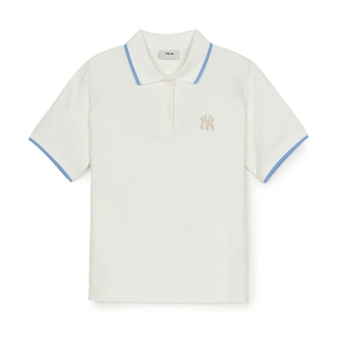 Áo Polo MLB Women's Dia Mono Tonton Jacquard Collar T-Shirt New York Yankees Ivory
