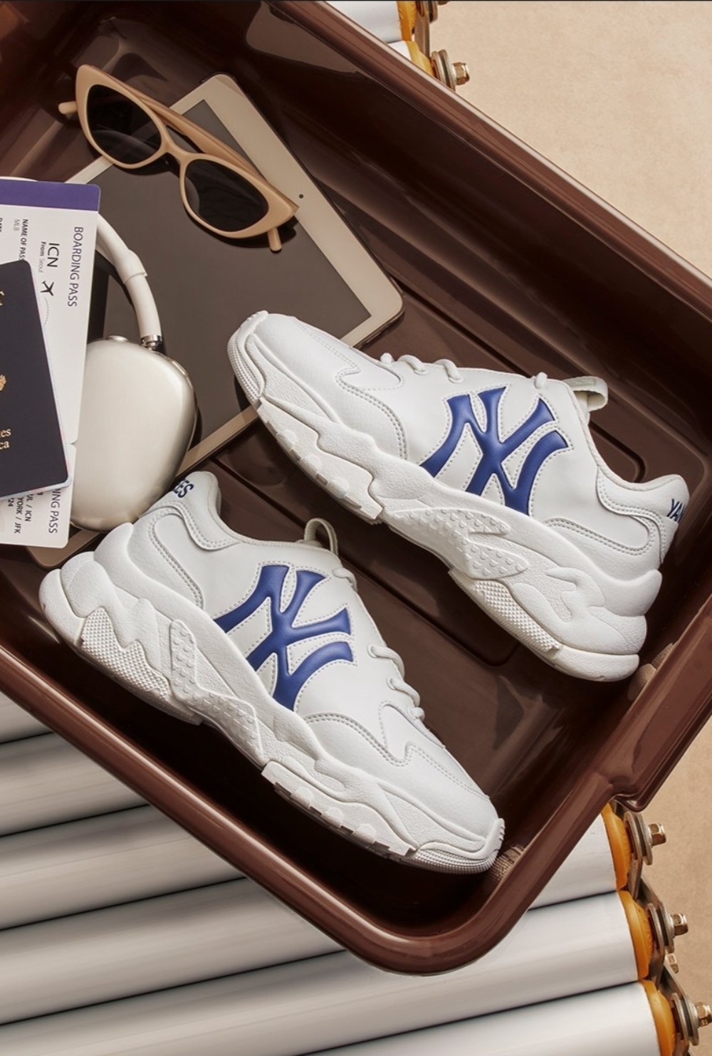 Giày MLB Korea BigBall Chunky Window New York Yankees Off White