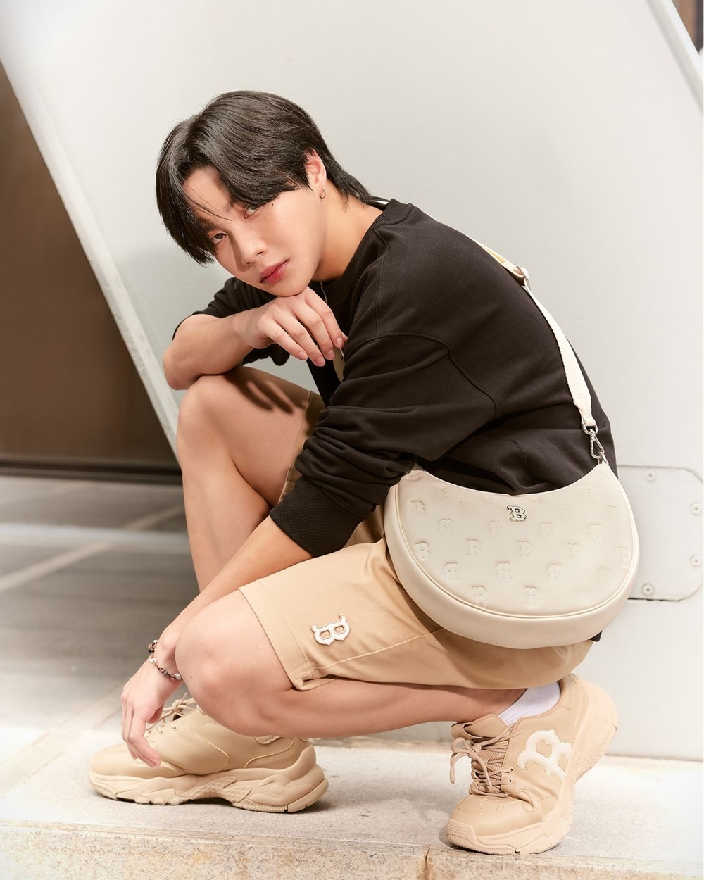 Trên nền màu be ngọt ngào và thanh lịch là Logo B to lớn làm điểm nhấn. Đây chính là dấu ấn thể thao mang tính thương hiệu được thừa hưởng từ đội bóng chày chuyên nghiệp Boston Red Sox. Thay vì logo được thể hiện hết ra bên ngoài thì thay vào đó nó xuất hiện một cách lấp ló như nhìn qua tấm cửa sổ. Đây chính là điều làm nên nét đặc trưng của dòng Chunky Window.