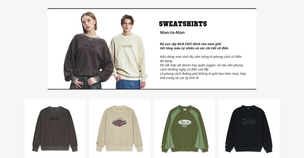 Trong BST 25SS, các mẫu sweatshirt MLB mang tone màu tự nhiên, thiết kế hơi cổ điển, nhìn là thích ngay.