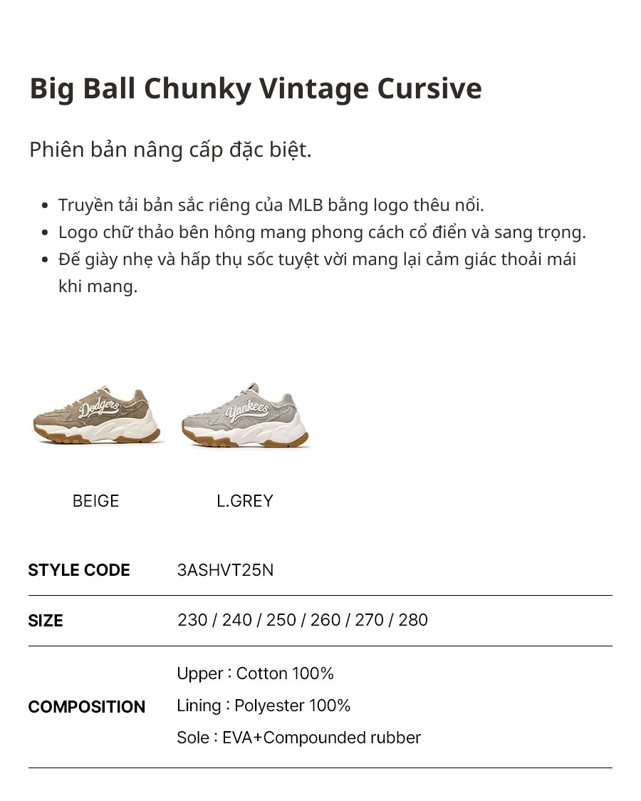 Giày MLB Big Ball Chunky Vintage Culsive LA Dodgers Beige ƯU ĐÃI 10% CHO THÀNH VIÊN MỚI