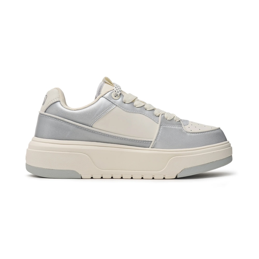 Không giống như bất kỳ sản phẩm thời trang nào khác, mẫu giày này khoác lên mình lớp nền vừa tương phản nhưng lại vừa hài hòa giữa hai màu bạc - trắng. Đây chính là đặc trưng của dòng Chunky Liner khi tách biệt hai màu bằng những đường chỉ tinh tế chạy dọc quanh thân giày, mang đến vẻ thời thượng chỉ bằng thiết kế đơn giản. Ngoài ra còn có sự xuất hiện đầy quyến rũ của logo NY lồng ghép, đại diện cho đội bóng chày tài năng New York Yankees.