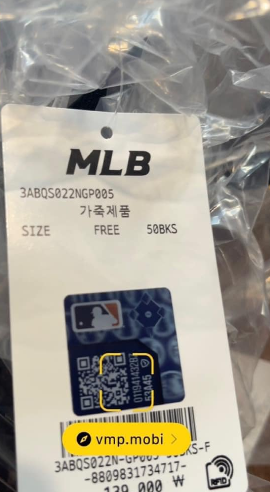 - Một số trường hợp, như mũ hoặc áo MLB: Mã QR thường xuất hiện ở phần nhãn mác hoặc tem dán phía trong.