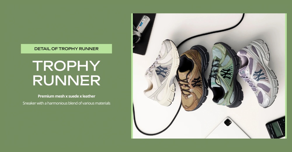 Nếu Trophy Low đại diện cho sự tinh tế, thì Trophy Runner lại là tuyên ngôn của phong cách runner hiện đại với tinh thần thời trang mạnh mẽ. Thiết kế nổi bật nhờ sự kết hợp cao cấp giữa Mesh x Suede x Leather, mang lại sự cân bằng hoàn hảo giữa thoáng khí, êm ái và độ bền.