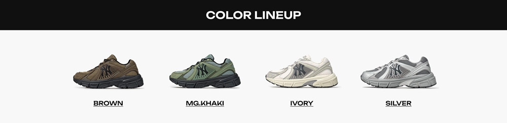 Bảng màu của Trophy Runner – Silver, Brown, MG.Khaki, Ivory – phản ánh tinh thần đô thị hiện đại, phù hợp cho những ai yêu thích phong cách streetwear cá tính nhưng vẫn đề cao tính ứng dụng.