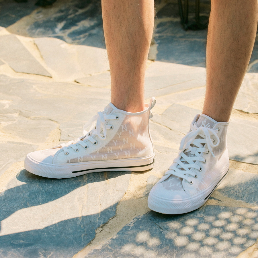 Giày MLB Playball High Monogram Mesh New York Yankees Ivory