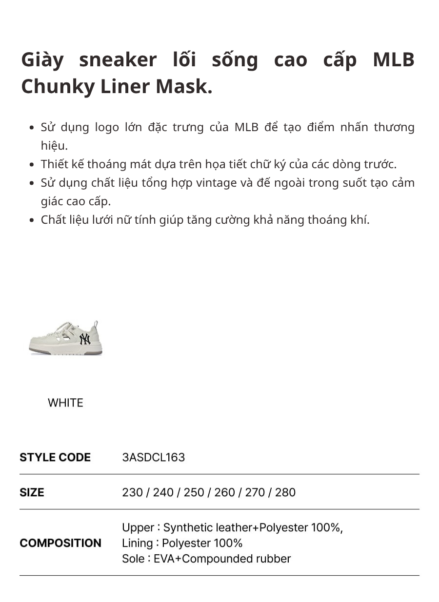 Thương hiệu: MLB Vietnam Mã sản phẩm: 3ASDCL163-50WHS