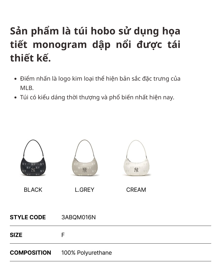 Túi MLB Classic Mono Embossed Hobo Bag New York Yankees Black ƯU ĐÃI 10% CHO THÀNH VIÊN MỚI