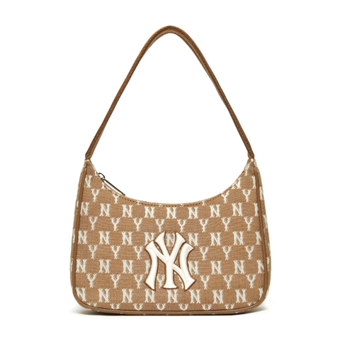Túi MLB Monogram Jacquard Hobo Bag New York Yankees Beige.